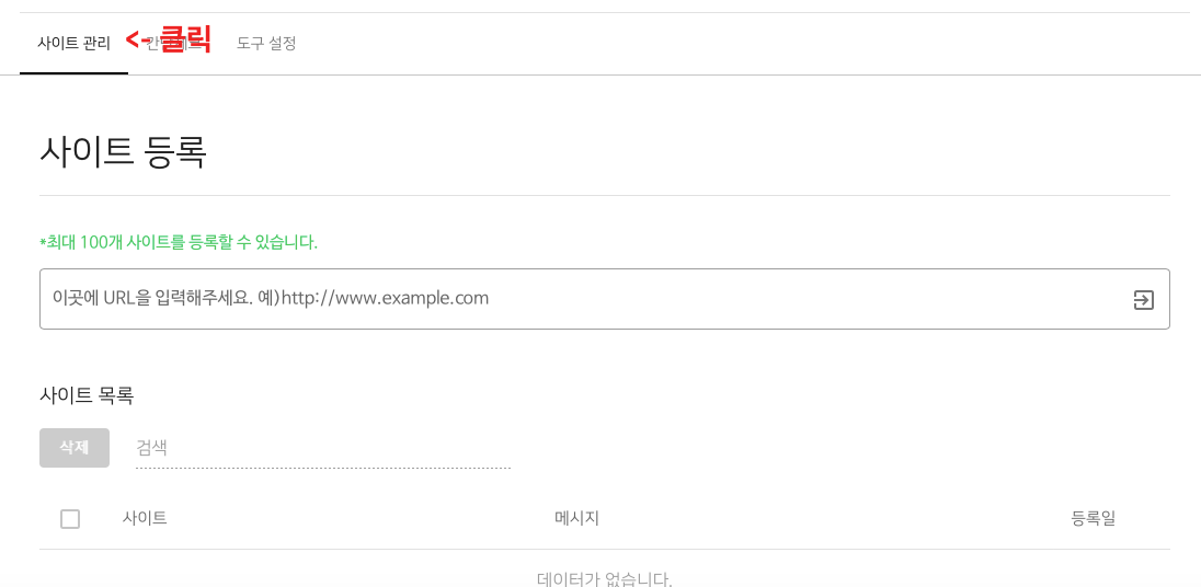 사이트 관리라는 탭이 보일 텐데요