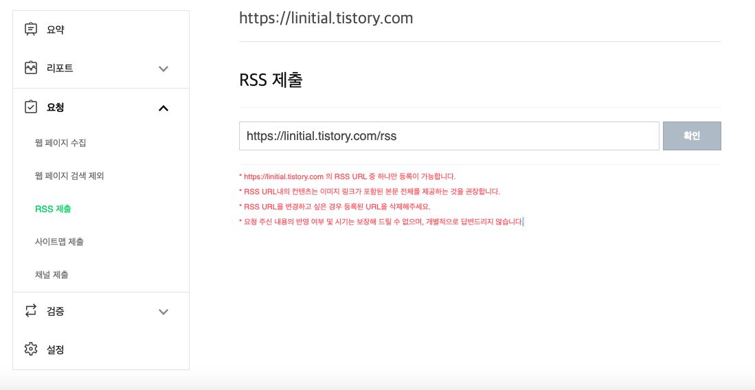RSS 등록 진행하기