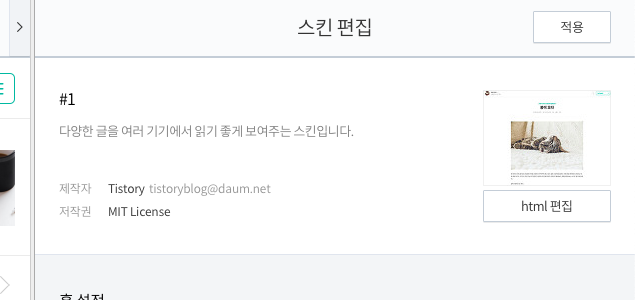 스킨 편집 메뉴로 이동하고