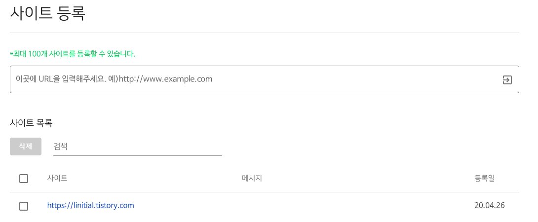 사이트 등록의 URL 입력란에 등록하고자 하는 주소를 등록하여 줍니다.