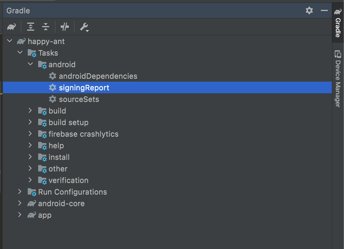 그럼 keystore 에 관한 hash key 정보들이 gradle build 탭에 출력된 것을 볼 수 있습니다.