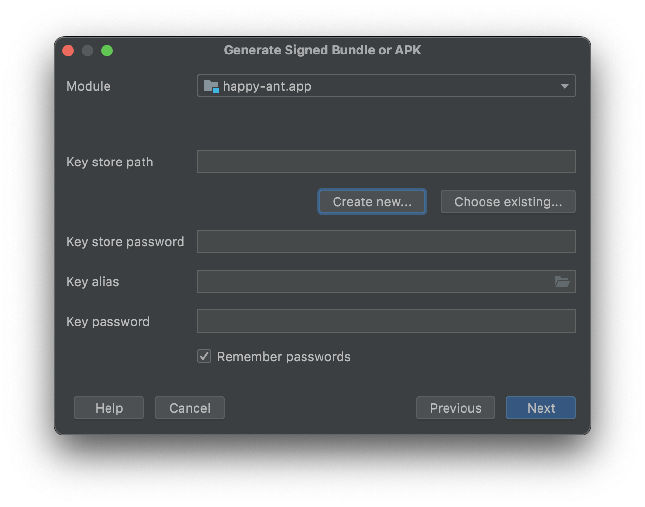Android Studio 를 이용한 release.keystore 생성 (추천)