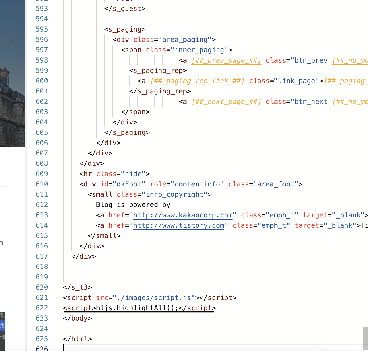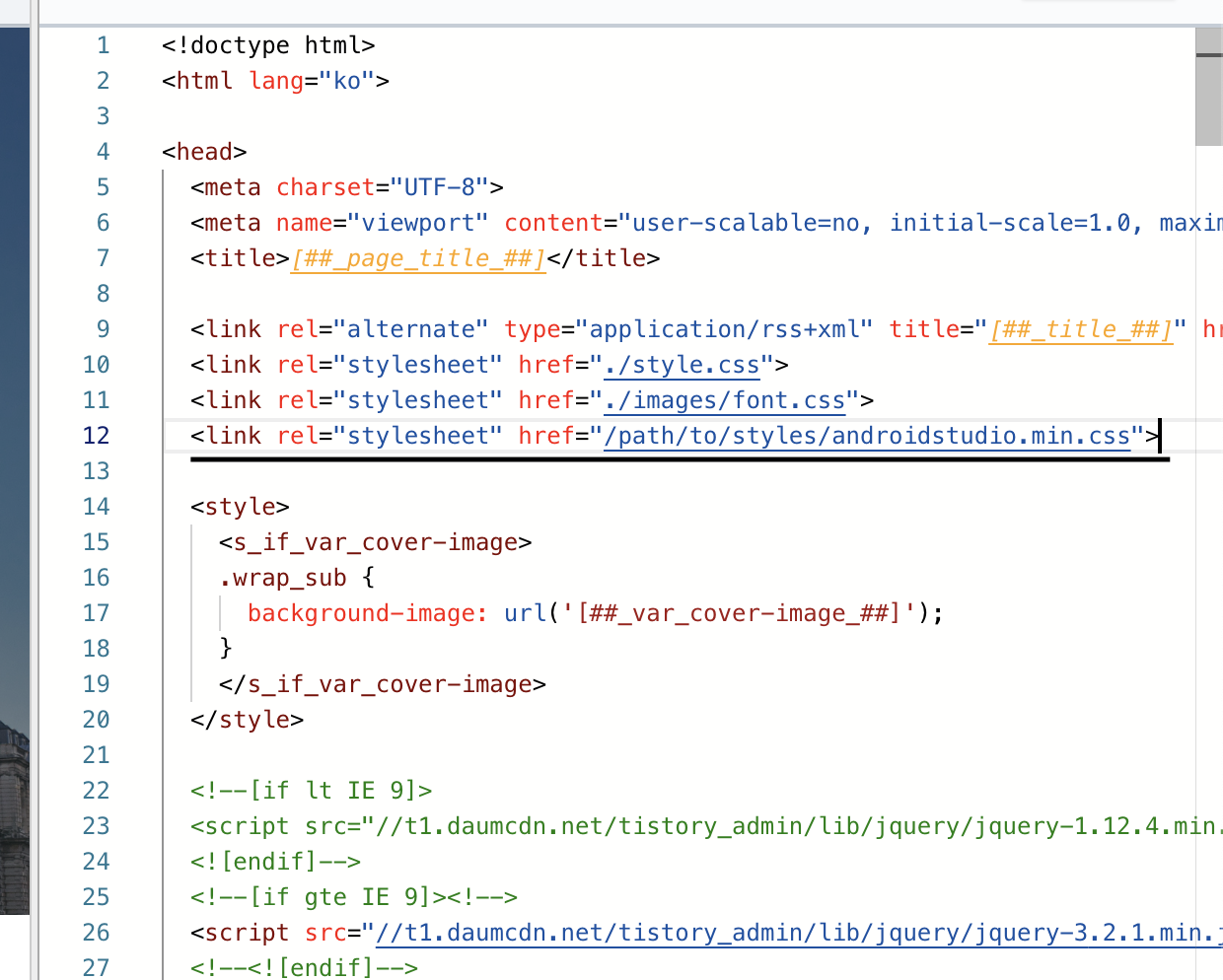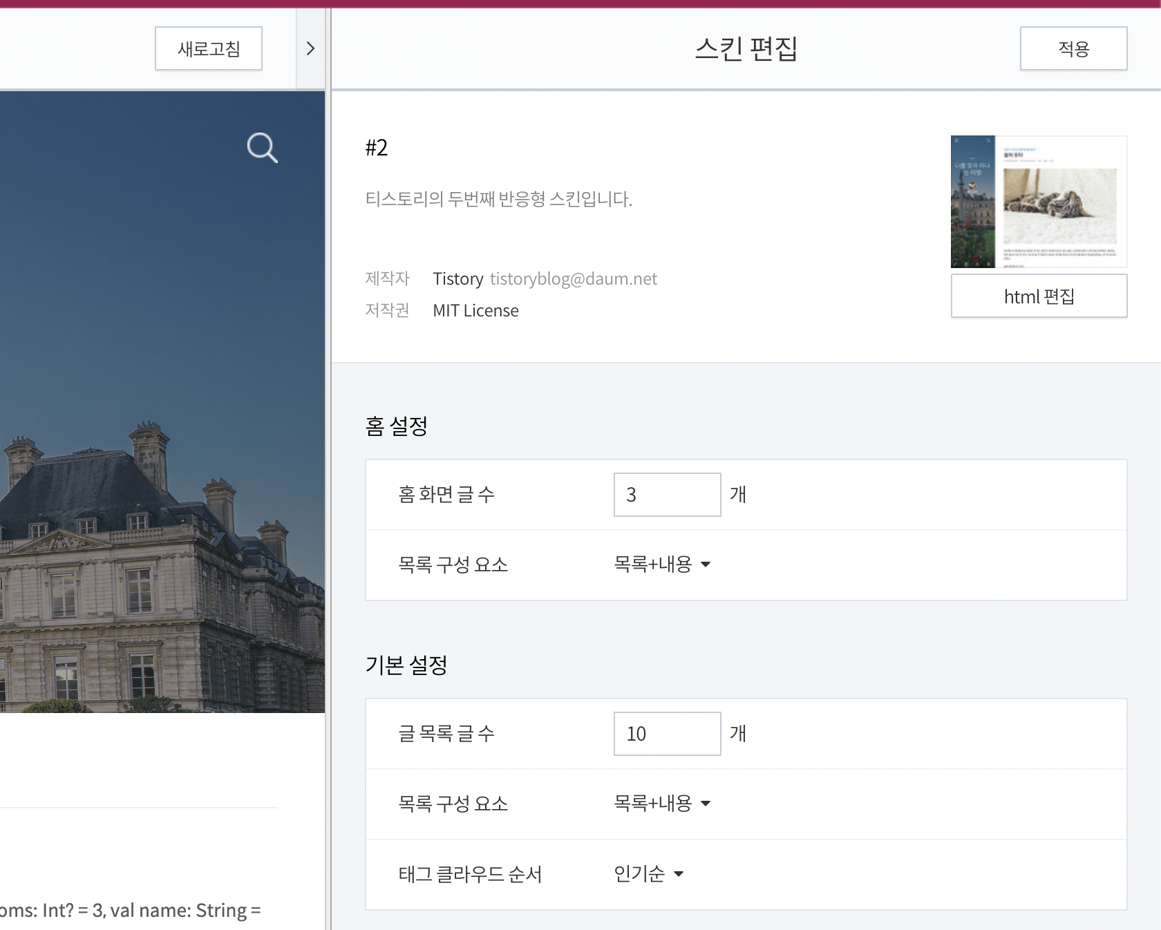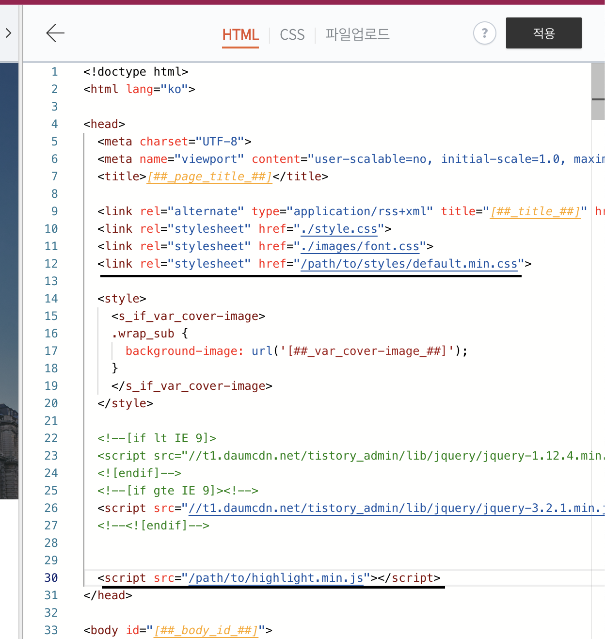 그리고 이전에 열어뒀던 티스토리 스킨 편집 페이지로 이동!