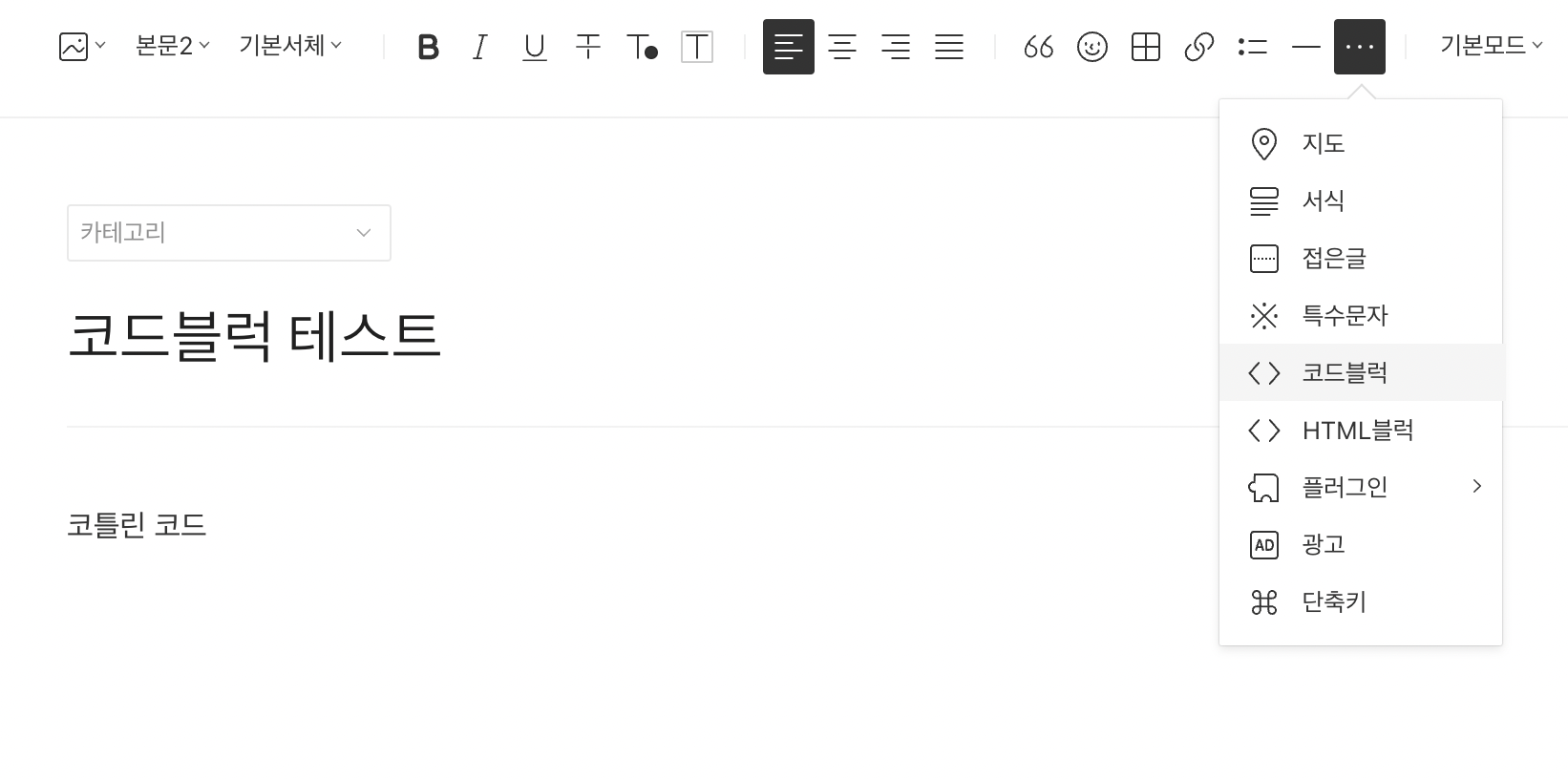 우측의 ... 표시를 눌러서 코드 블럭을 클릭해 줍니다