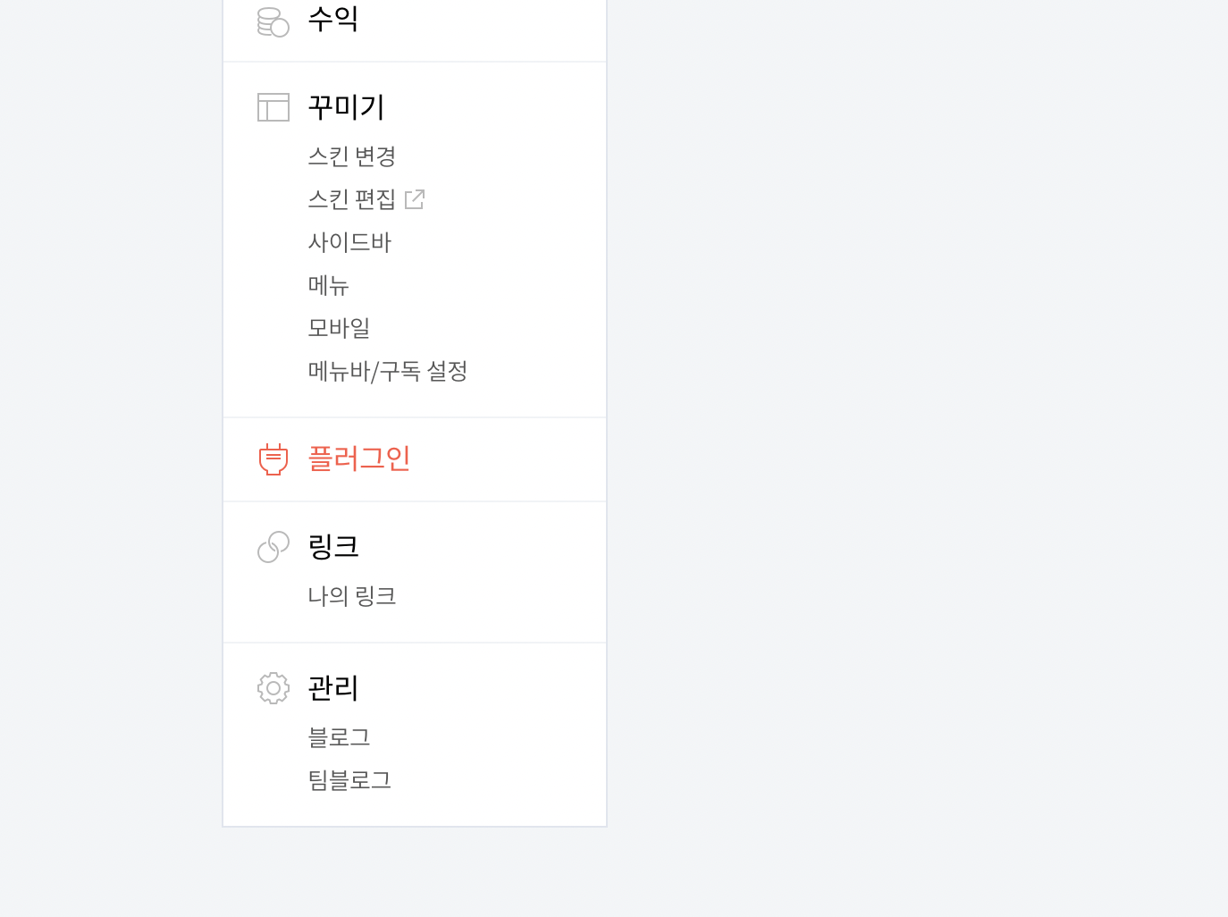 기본적으로 티스토리에서 플러그인이라는 관리 방법을 제공하고