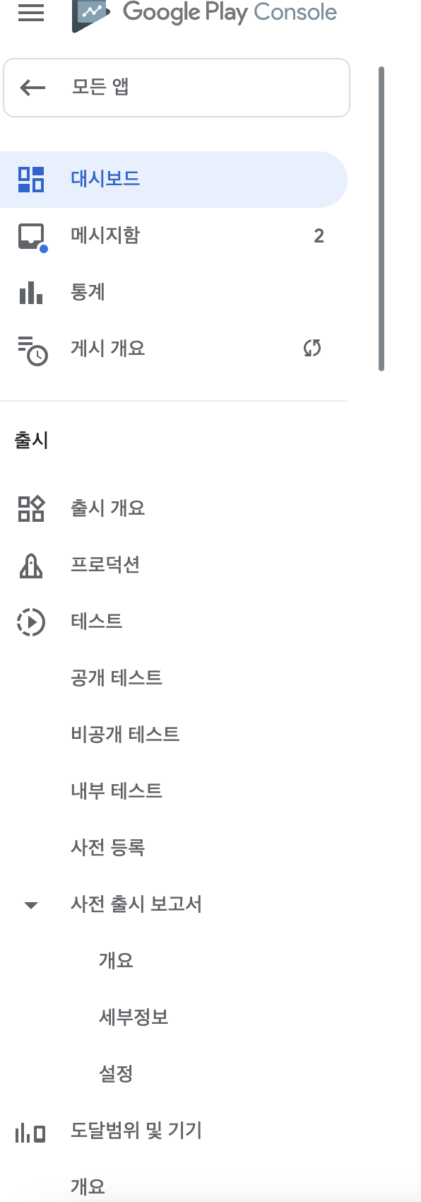 이상으로 구글플레이 콘솔에서