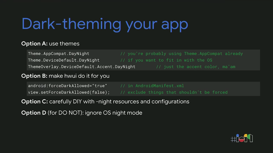 - 구글 I/O 에서 dark theme 에 대해서 발표한 내용이다.
